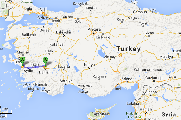 Selçuk to Pamukkale. Despite it being a 4-hour drive, a lot of people make it a day trip. I was the only one in my group who stayed in town for the night.