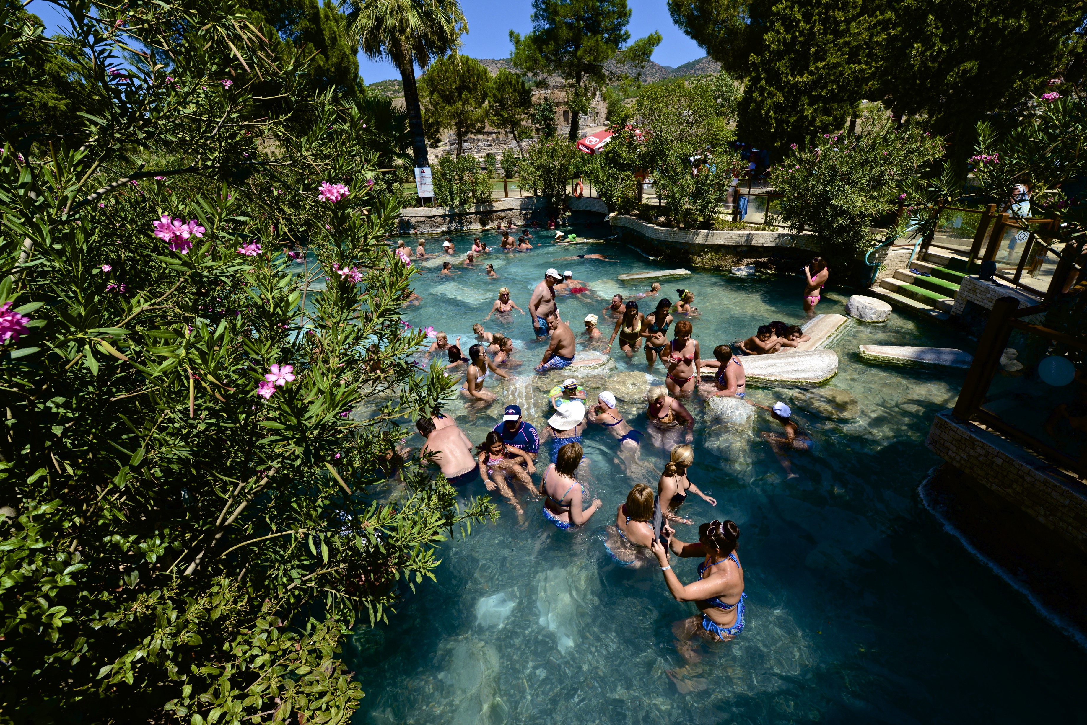 In a modern part of Hierapolis you could swim in the waters from the hot springs. In the natural pools, it’s more difficult to submerge your entire body, so this swimming area allows visitors to take full advantage of the water’s natural minerals and health benefits.
