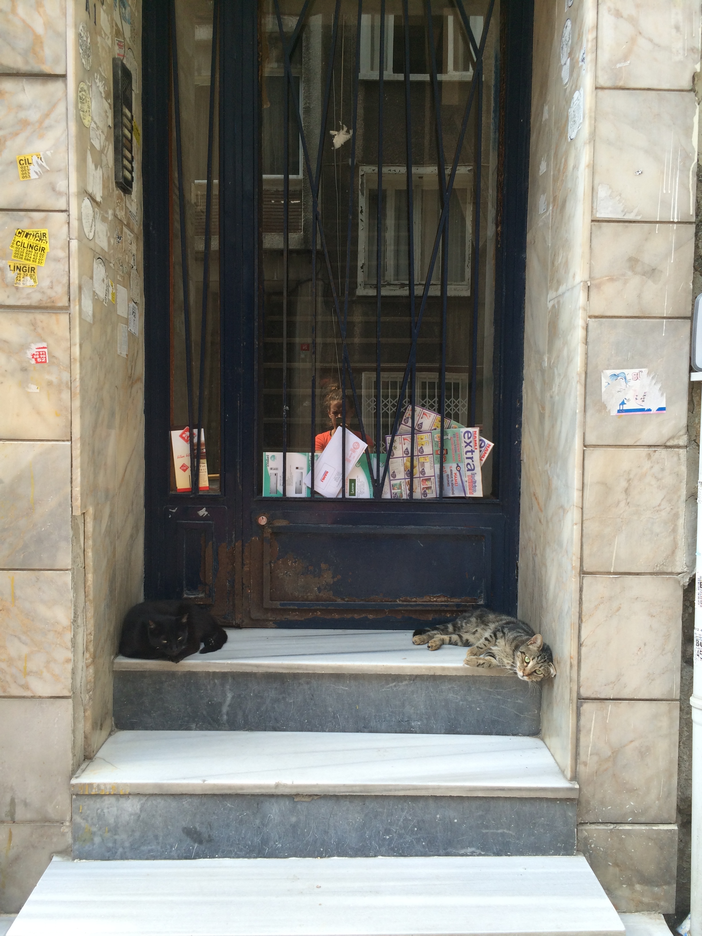 IMG_5596 Published September 28, 2014 at 2448 × 3264 in Sara Moves to Cihangir ← Previous Next → The door to my building, with the usual suspects.